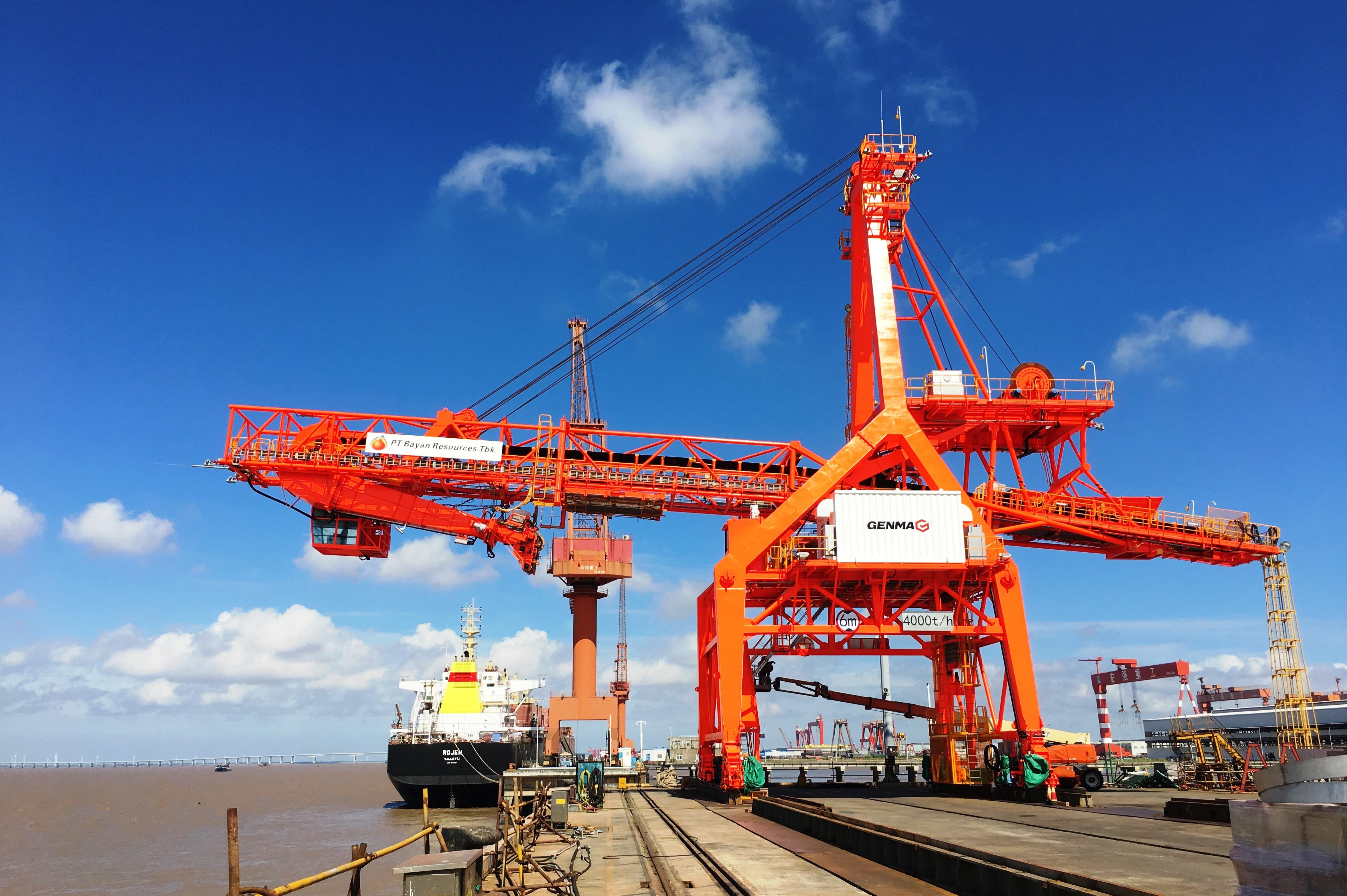大型料散機(jī)械裝船機(jī)是連續(xù)裝船作業(yè)中必不可少的大型機(jī)械設(shè)備,一般都會(huì)有與之匹配的機(jī)械來進(jìn)行連續(xù)裝船。
